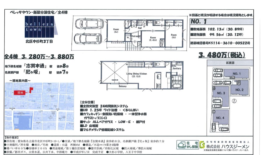 ベレッサタウン・新築分譲住宅 / 全4棟 北区中杉町3丁目